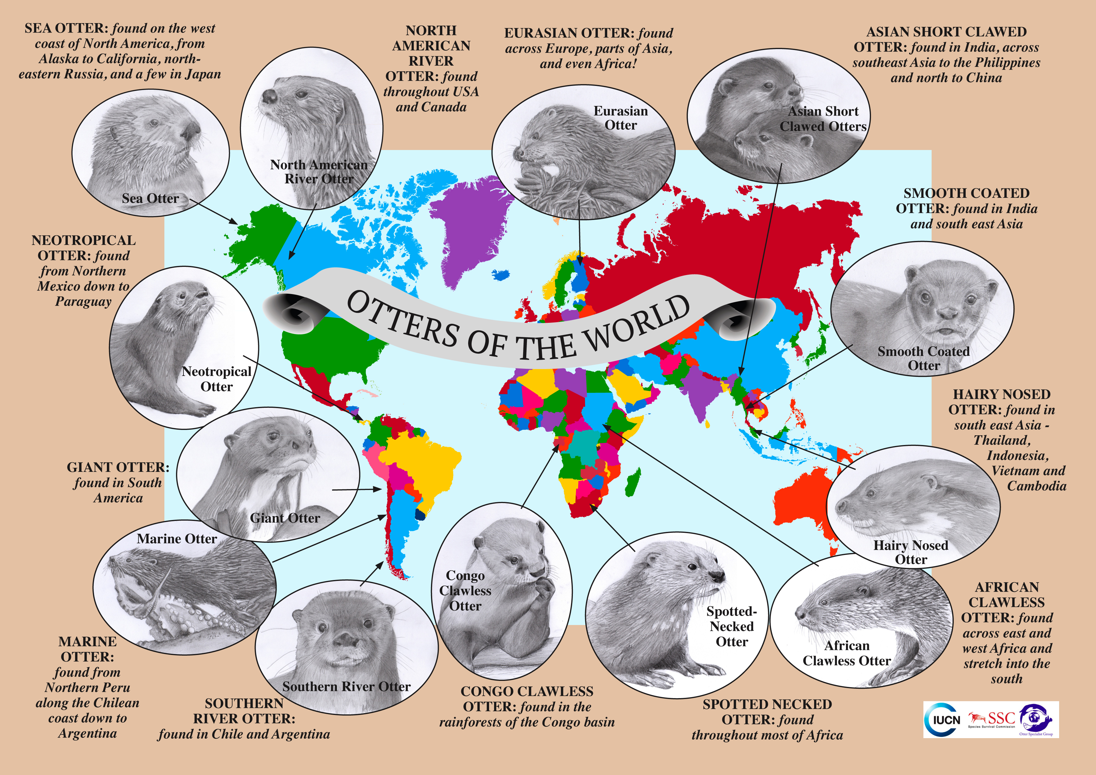 And here is our most beautiful Otters of the World map, ideal for awareness and to see what species of otters are where!